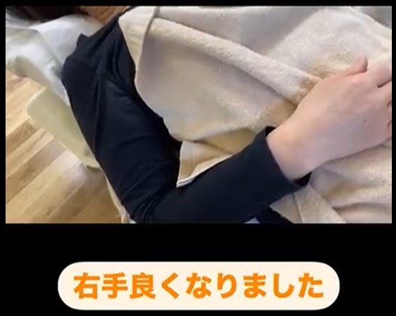 Aさんは右手の痛みや違和感を訴え、日常生活に支障をきたしていた事からご来院されました。微弱電流機器を用いて全身ケアを実施。痛みを感じていた右手まわりのサポートを中心に、全体の動きを整えるアプローチを行いました。